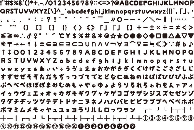 太い丸ゴシック系のフォントと組み合わせる事によって漢字といっしょに使用可。