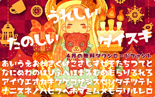フロップデザインで「うれしいたのしいダイスキ」というフォントが公開されています。