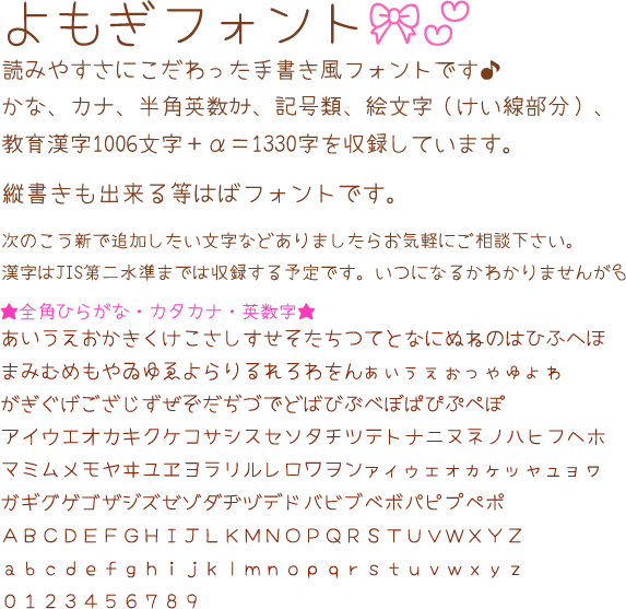今日はなかなか良いフォントに出会えたので紹介します。よもぎフォントは手書きフォントとして完成度が高いフォントです。