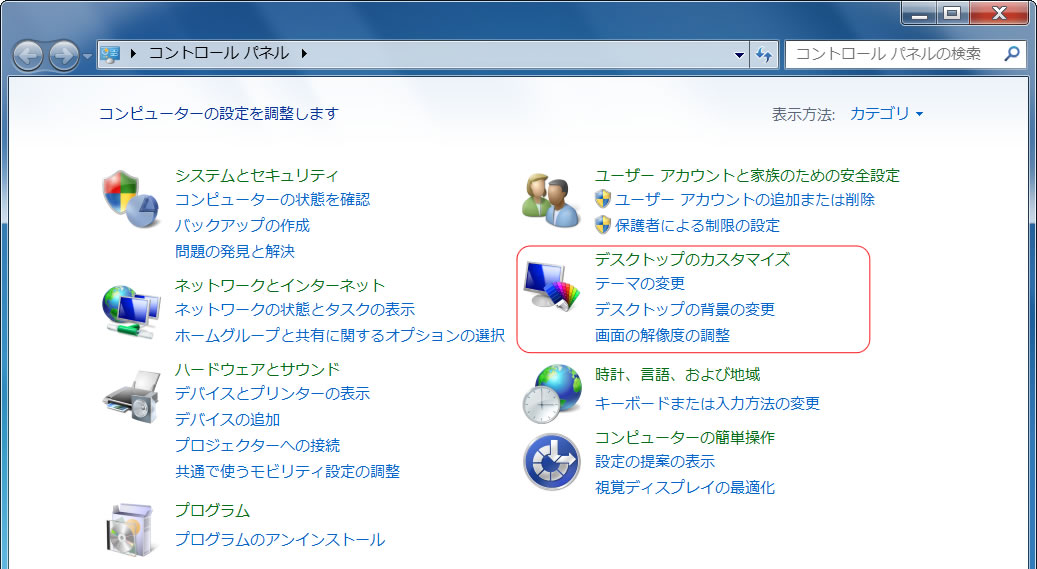 1.「スタート」→「コントロールパネル」をクリック。
