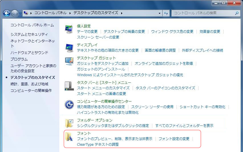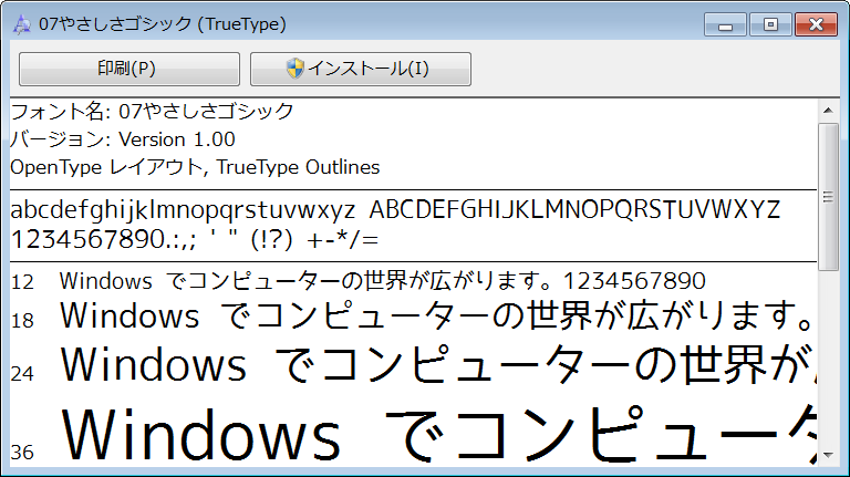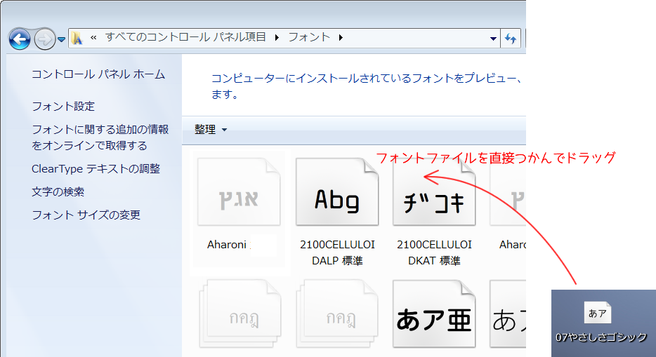 Windows7のフォントのインストール